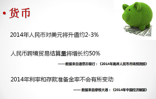 7.货币政策方面,2014年的利率和存款准备金率不会有所变动。